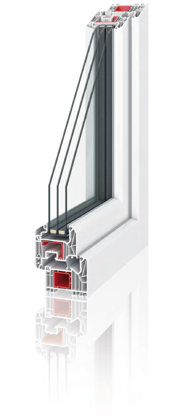 Das exklusive Flügelprofil-Design des Profils LIFE mit 7-Kammer-Geometrie und einer Rahmenbautiefe von 82 mm sorgt für eine hervorragende thermische Isolation.